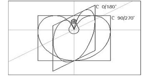 对称:当灯具C0°和C180°剖面与C90°和C270°剖面配光对称时,此配光曲线称为对称配光。