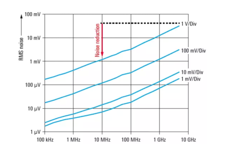 R&S(罗德与施瓦茨)RTO示波器创新性设计了HD高分辨率工作模式。在该模式下,通过指定带宽,在保证被测信号不受影响的情况下,通过降低带外噪声能量,提高测试信噪比,从而实现高达16Bit的垂直分辨率。通过HD模式,示波器底噪被降低至uV量级,为进行uV级小信号测量提供了技术保障。