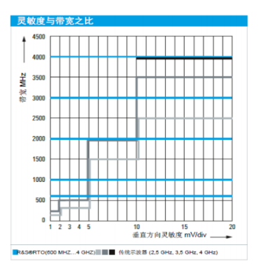 一般来讲,当用示波器在低于10 mV/div 的档位进行测量时,通常会通过限制测量带宽的方法将噪声尽可能地压低。而 R&S RTO却不同:它甚至可以在最敏感的小信号档位提供全带宽,并且用超过 7位有效位的 A/D 转换器来进行信号量化。