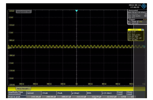 图三:R&S示波器在垂直方向灵敏度达 1 mV/div 的全带宽测量